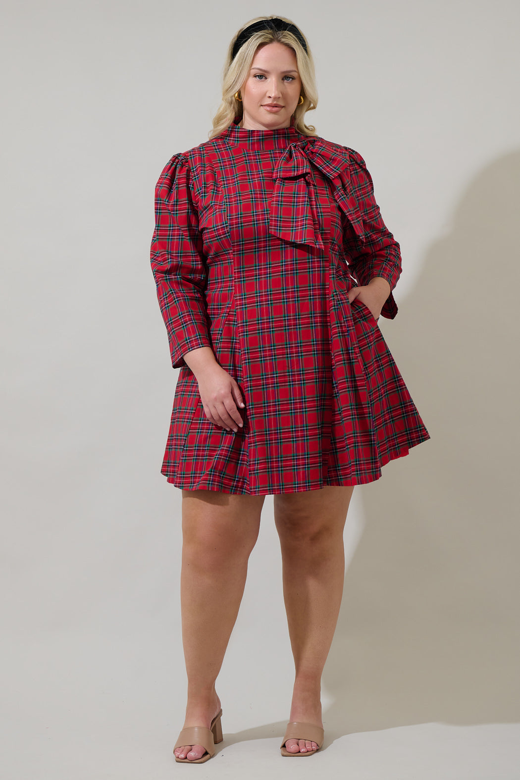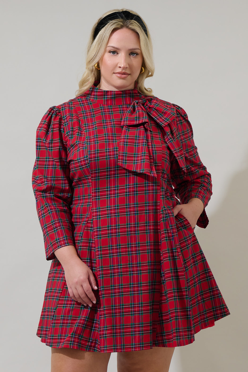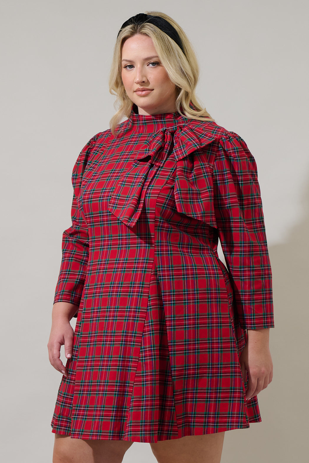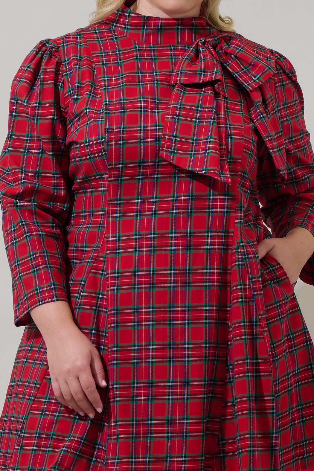 What is not to love about the Arvada Plaid Padma Bow Mini Dress? This red multi plaid pattern features long sleeves with a mock neck and an eye-catching bow on one side. The bottom has small pleats giving it a flare look. For a next-level style simply add a pair of heels and a statement earrings to finish off the look.