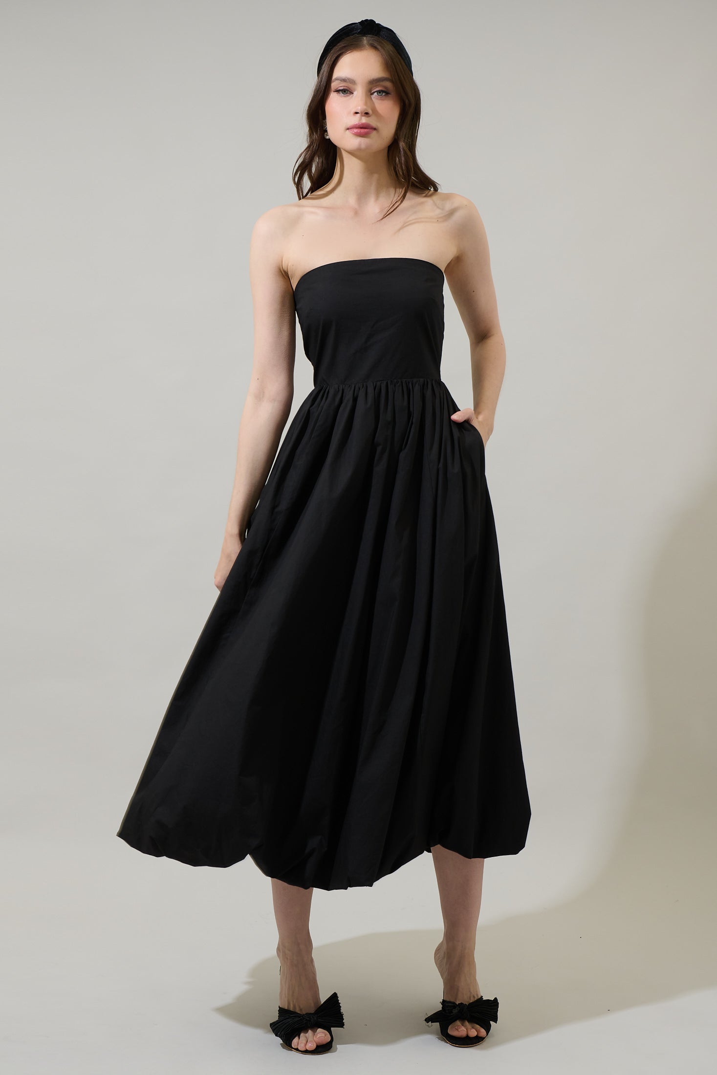 You'll always feel cute and confident in the Belle Strapless Maxi Dress. A strapless look with a bubble effect shapes this maxi dress. It has pockets on each side, smocked back, and an invisible zipper in the back. Add on some heels to finish off your look.