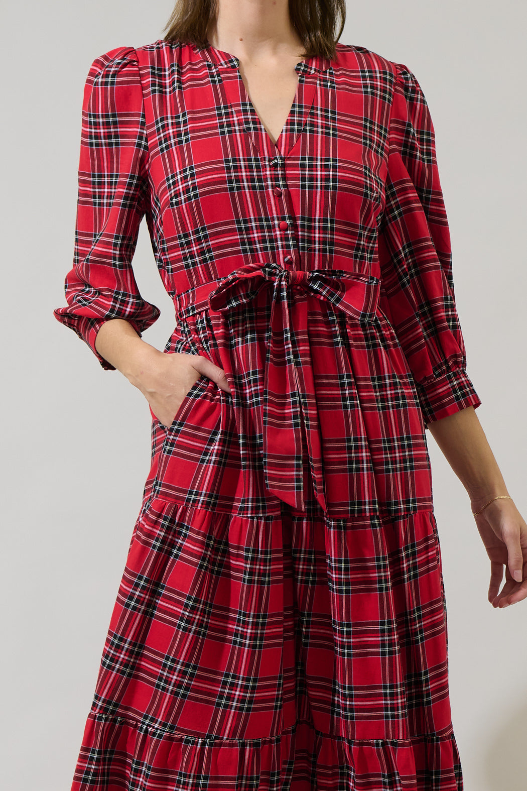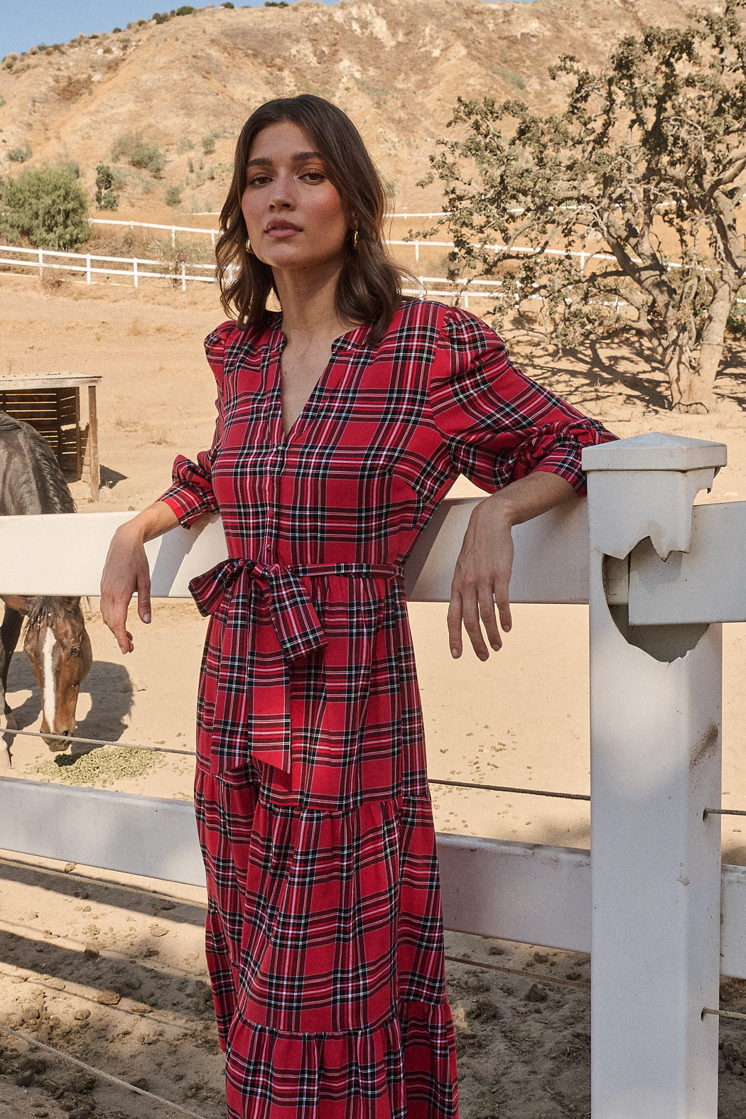 All we want to do this fall, is wear adorably cozy dresses like the Boswell Tartan Plaid Yanis Button Up Midi Dress. Lightweight fabric, with a plaid pattern throughout, shapes long sleeves with a button up split neckline and a belt around the waist. Pair it with heels or boots to go along.
