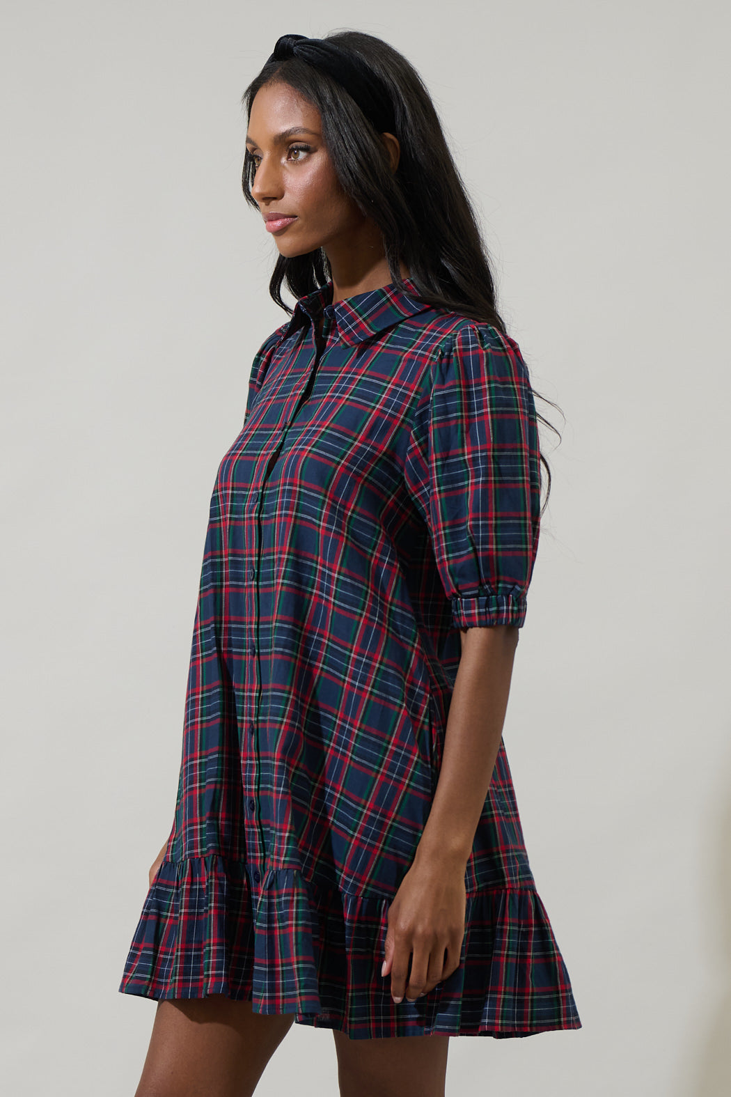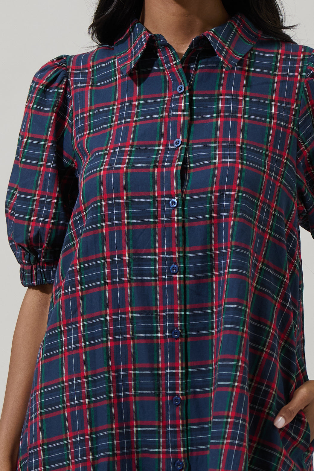 Let the Chapman Plaid Levy Button Down Shift Dress brighten up your day! A plaid poplin dress with a classic collar leads to a functional button front detail. Short, bubble sleeves frame a shift silhouette with a drop ruffle waist. Pair the look with block heels or loafers for a cute look.