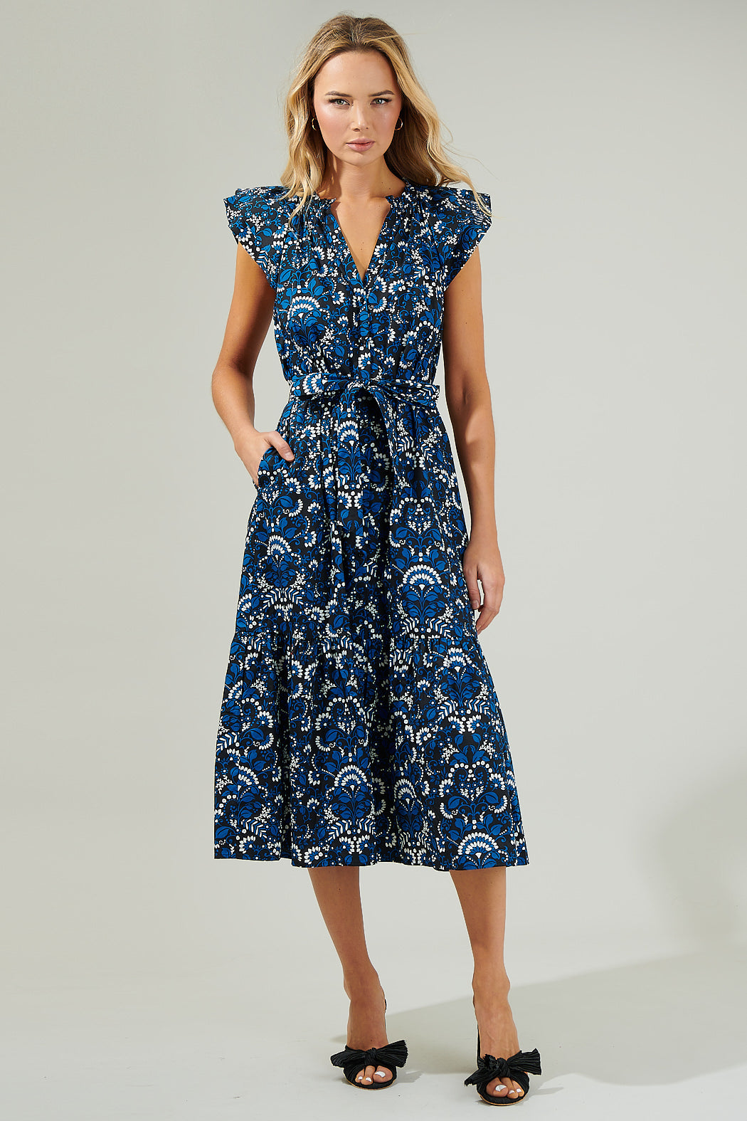 Get groovin' in the Etta Floral Charlotte Button Midi Dress! This dress is double the fun with a belt tie around the waist, split neckline, and button up detail in the front. The breezy maxi skirt, is tiered. Pair it up with heels and gold jewelry to finish off your look!