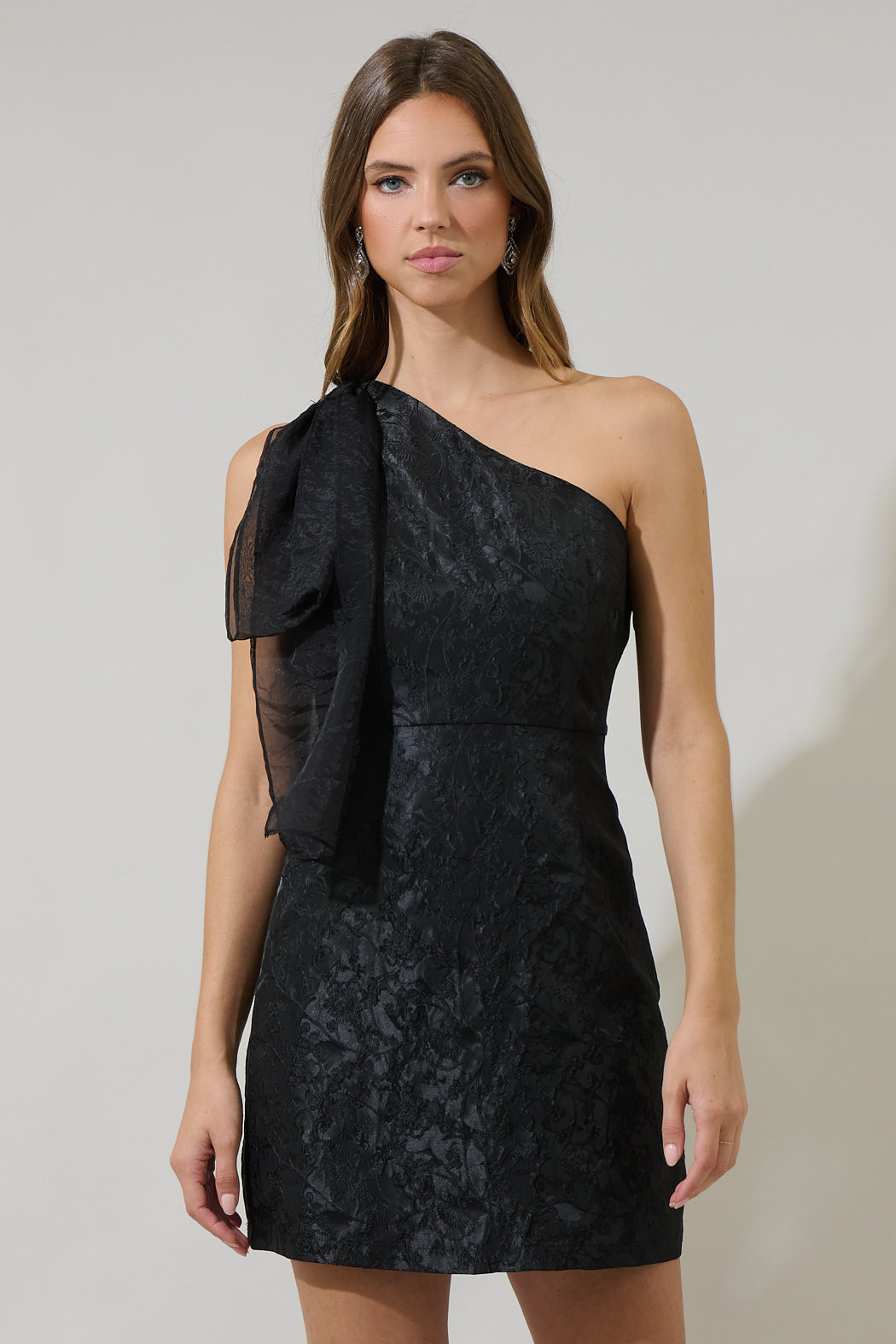 The Henefer Floral One Shoulder Mini Dress is the perfect thing for wedding season. It features a one shoulder sleeve with a sheer bow on top and a beautiful contrasting floral print throughout. Pair it with mules and a matching handbag.