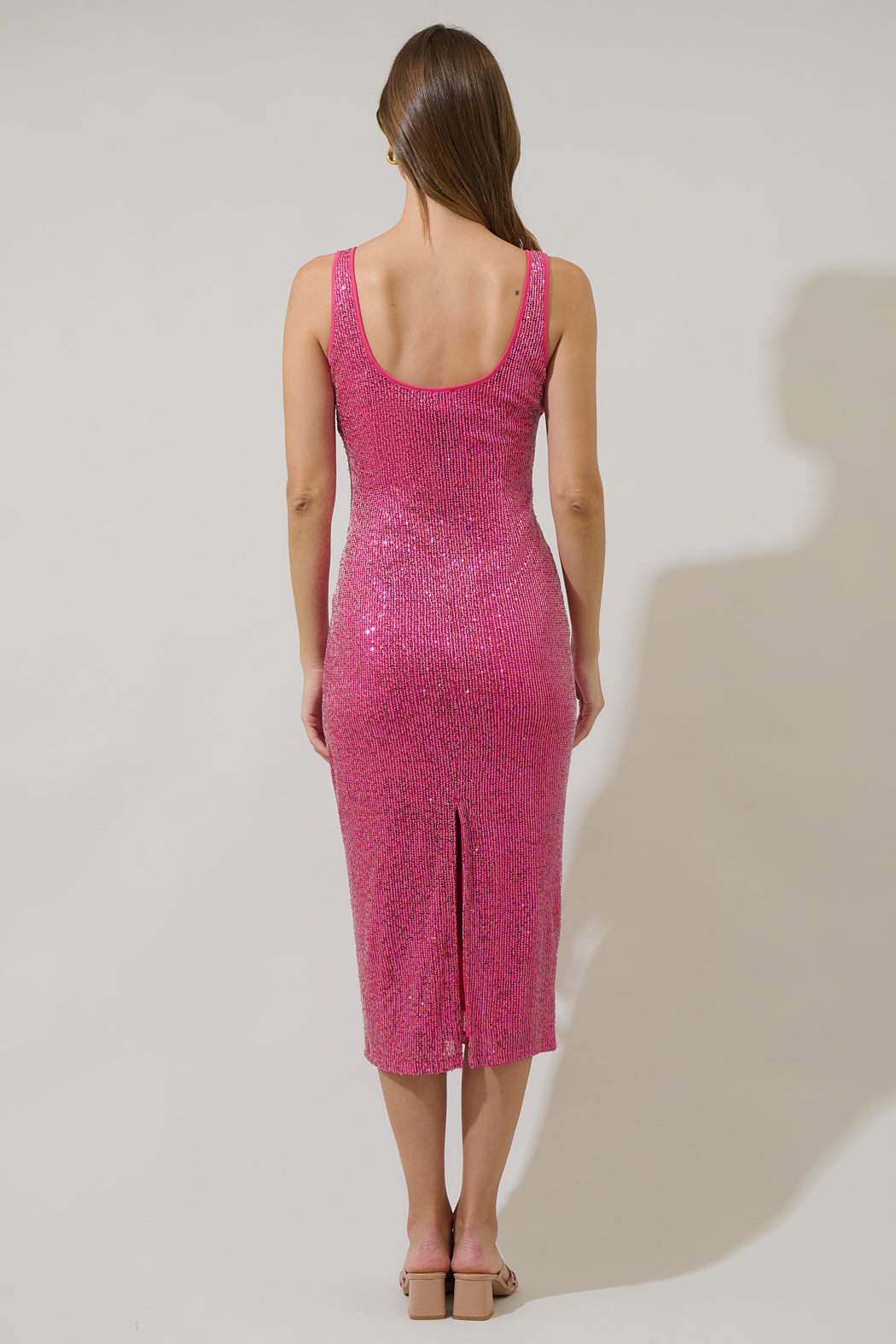 She’s shinning! The Kamari Sequin Liv Tank Midi Dress will have you looking your absolutely best. It features a deep scoop neckline in the back with an invisible zipper and slit. It creates a sleeveless style with tank top shoulder and ends in a midi length. Pair it with simple accessories.