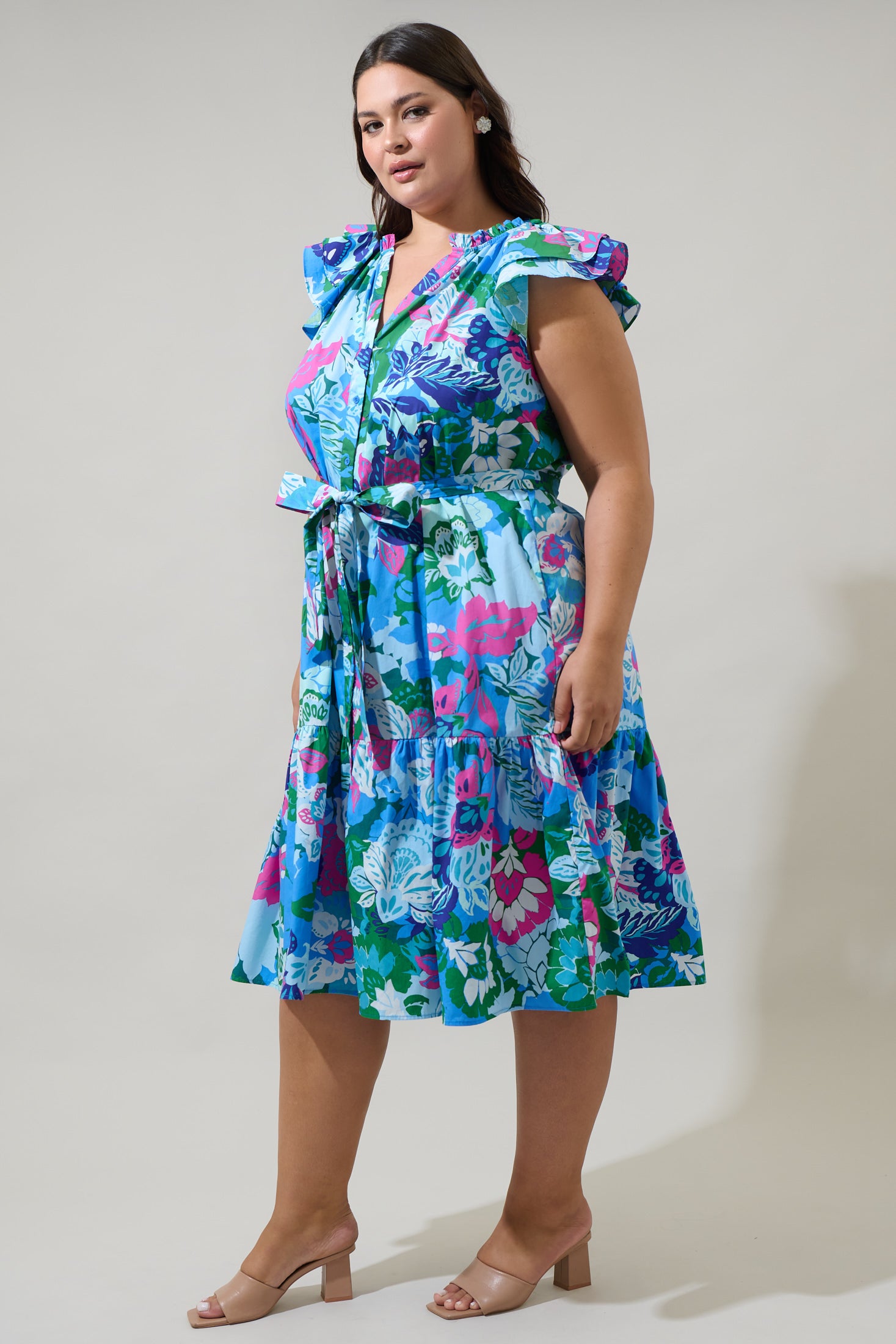 Get ready to be admired for looking good in the Lavera Floral Charlotte Button Midi Dress. It features a split neckline and a flare bodice, framed by short cap sleeves. A belt wrap around the waist and secure at the back, followed by a button-down design. Pair it up with sandals and a summer hat.