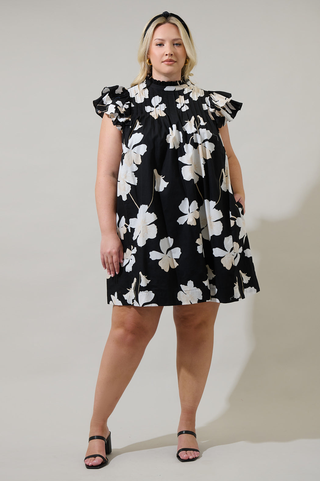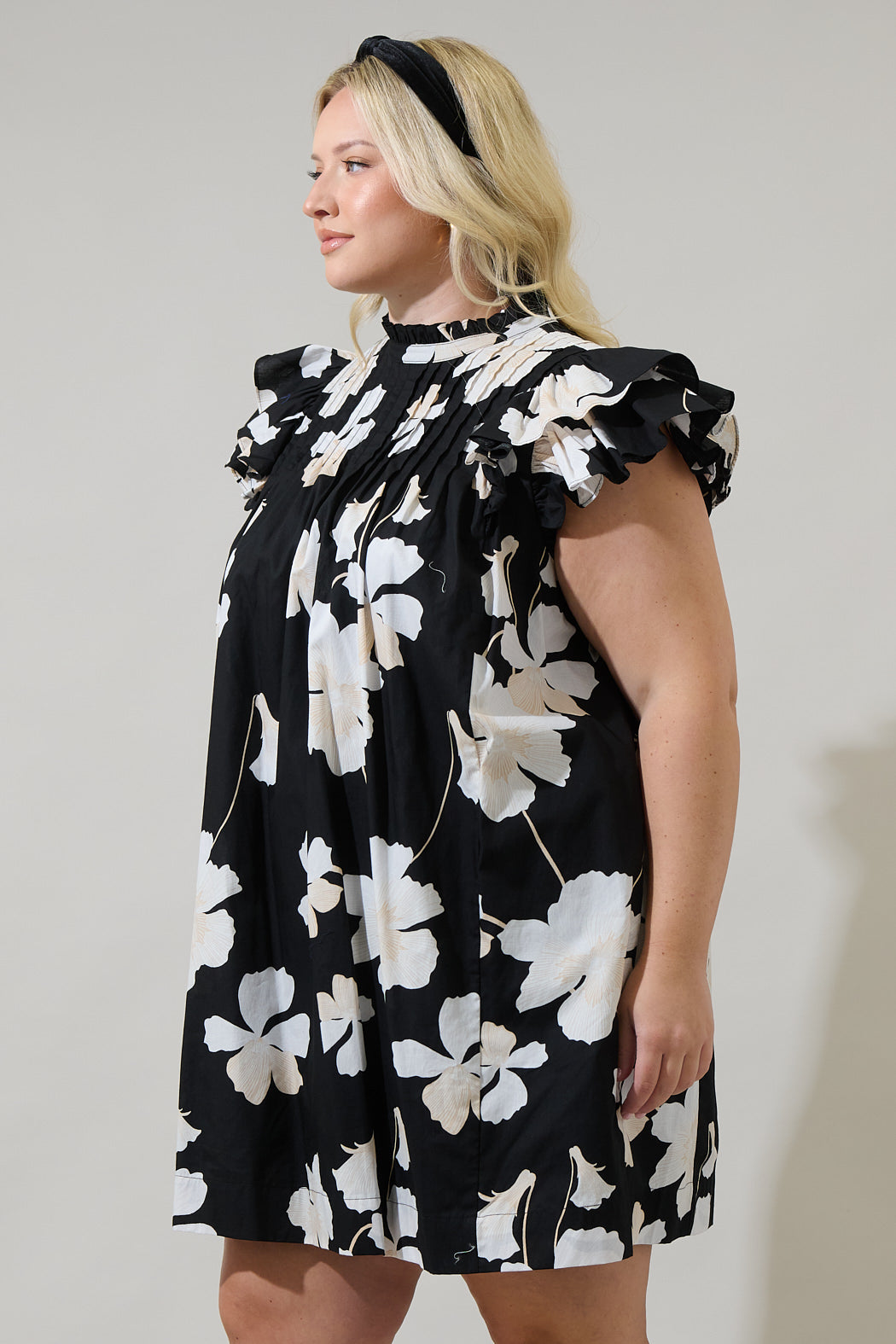 The Medina Floral Lovel Shift Mini Dress is one of those dresses we're always reaching for. Short layered ruffle cap sleeves frame this mock neck, pleated front mini dress. The back also had pleats on the top and a keyhole. Pair the look with white earrings and black heels.