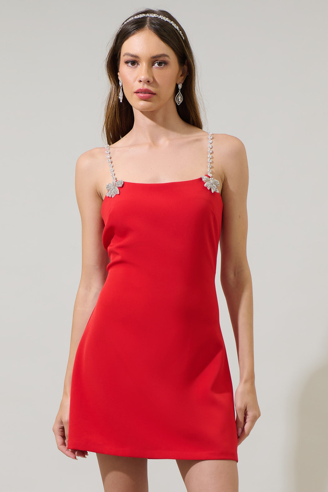 Get ready for 'gram-worthy pics all night when you're in the Ruby Bow A-Line Mini Dress. Elevated by a rhinestone embellished spaghetti strap, this mini dress boasts a flattering straight neckline. The back has an invisible zipper. Wear it with strappy heels and clutch bag to go along.