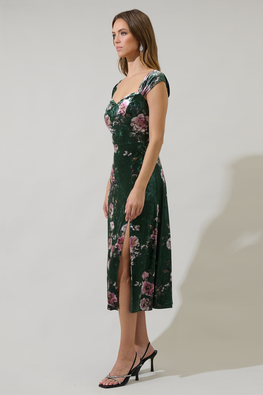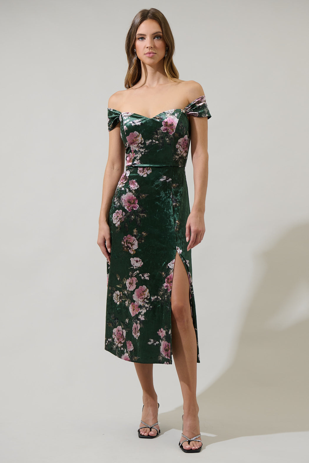You’ll be absolutely adored everywhere you go in the Sharon Floral Dixon Convertible Strap Midi Dress. A soft velvet floral design with convertible straps that can be worn both on or off the shoulders. It frames a sweetheart neckline, along with princess seams to create a sleek bodice. Pair it with heels for a glamours look.