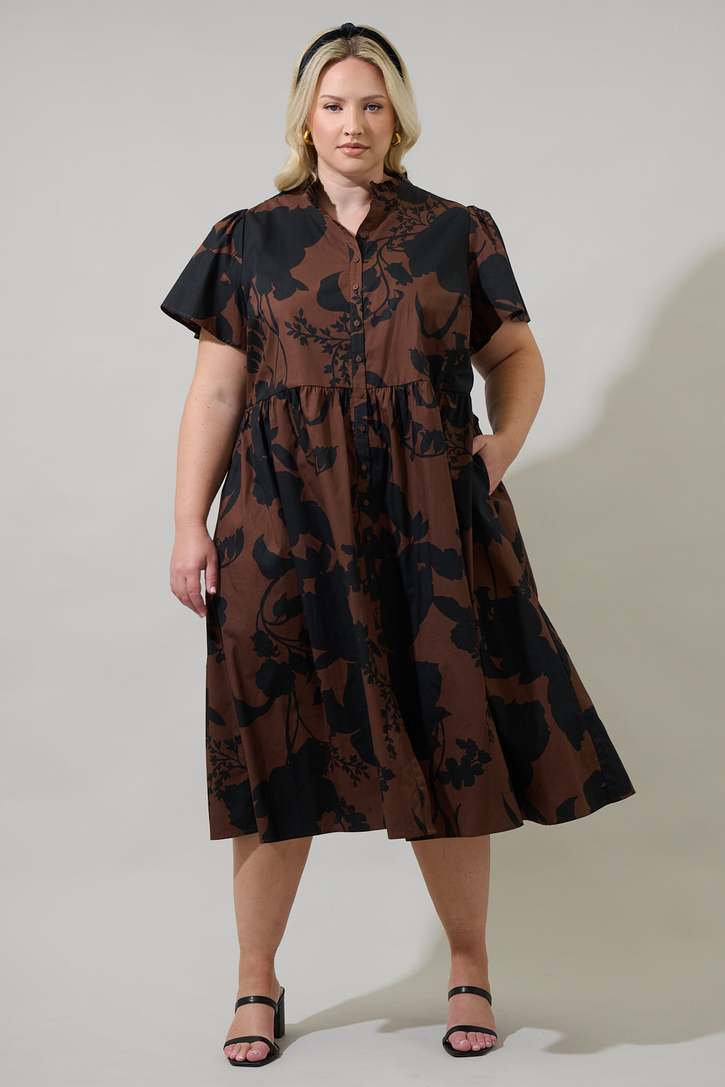 Sweet and stylish come together to form the Somerton Floral Aurelia Babydoll Midi Dress. It forms a mock neck with button up closure detail from top to bottom, and short sleeves. A belt around the waist tops a flowy skirt that flows to a modest midi length. Pair with any shoes of your choice and simple accessories.