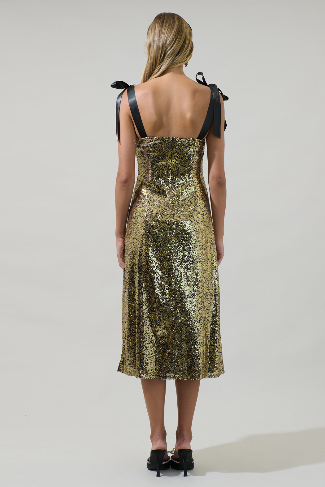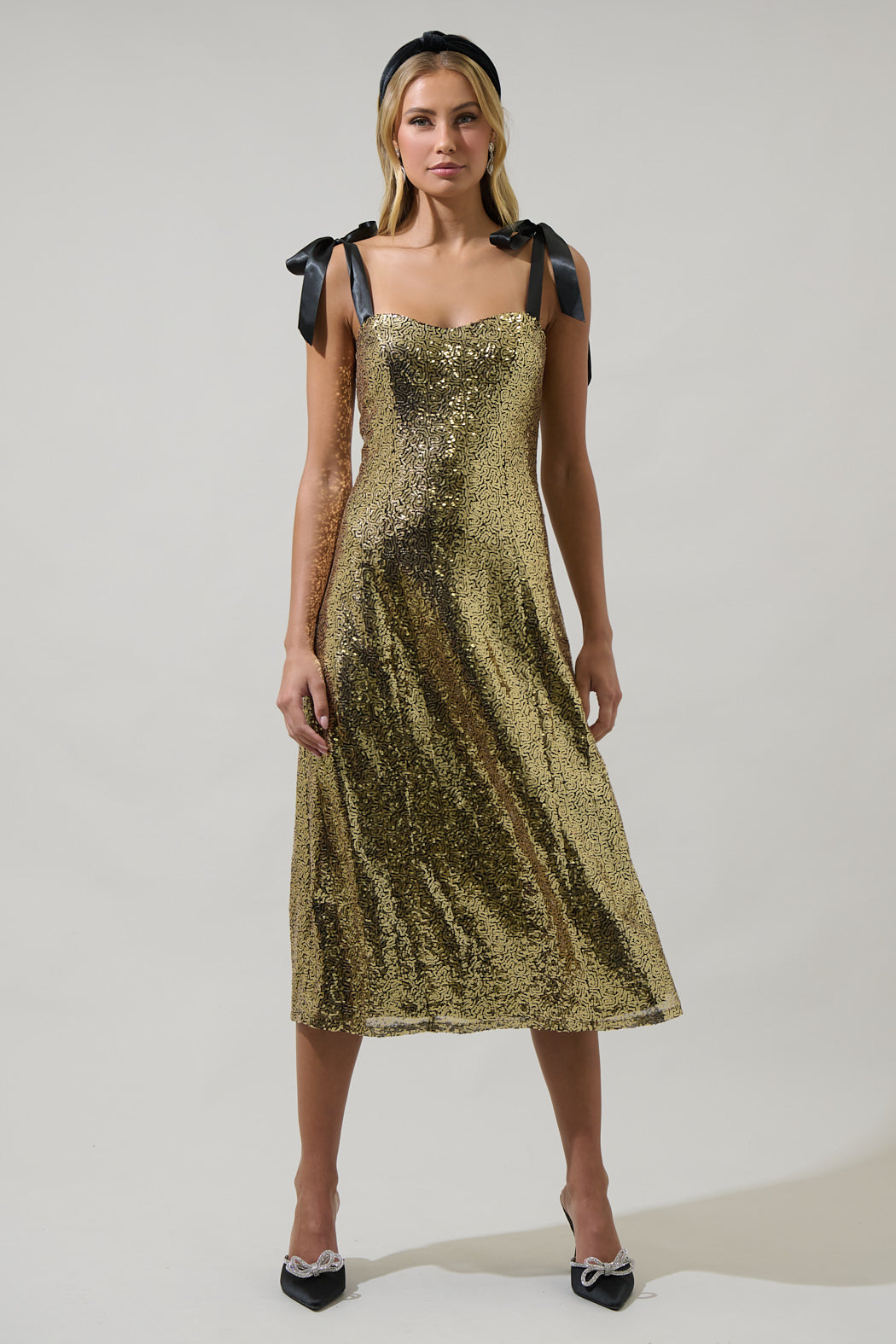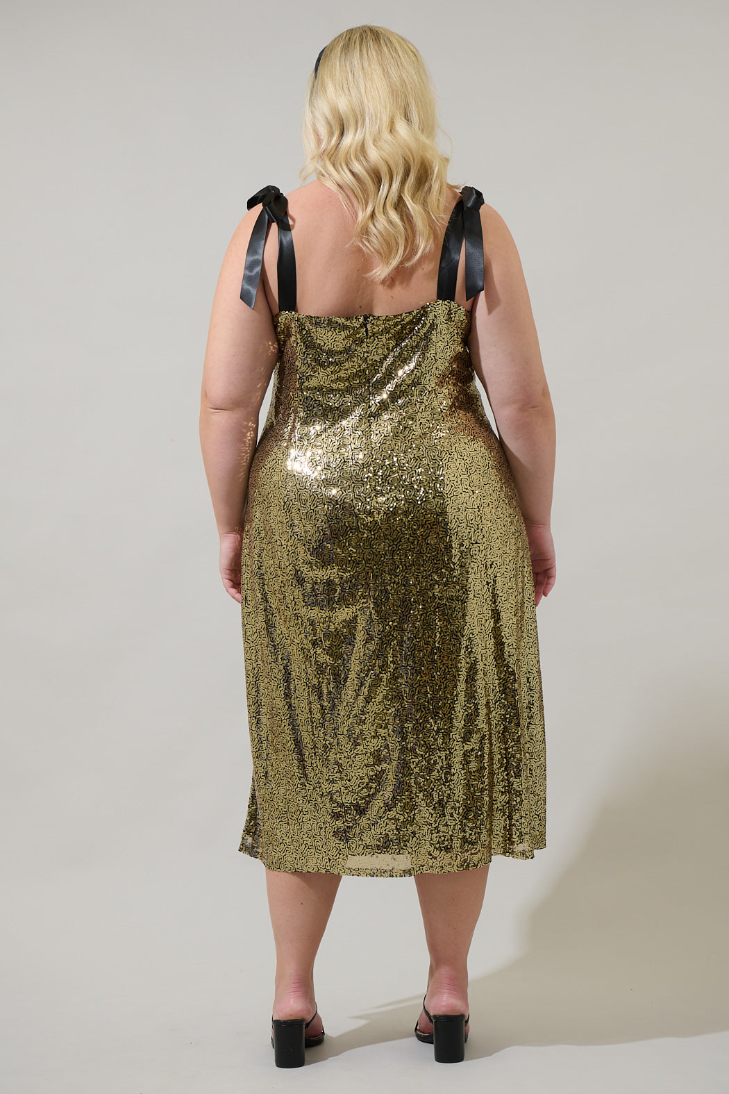Adelisa Sequin Tie Strap Midi Dress Curve