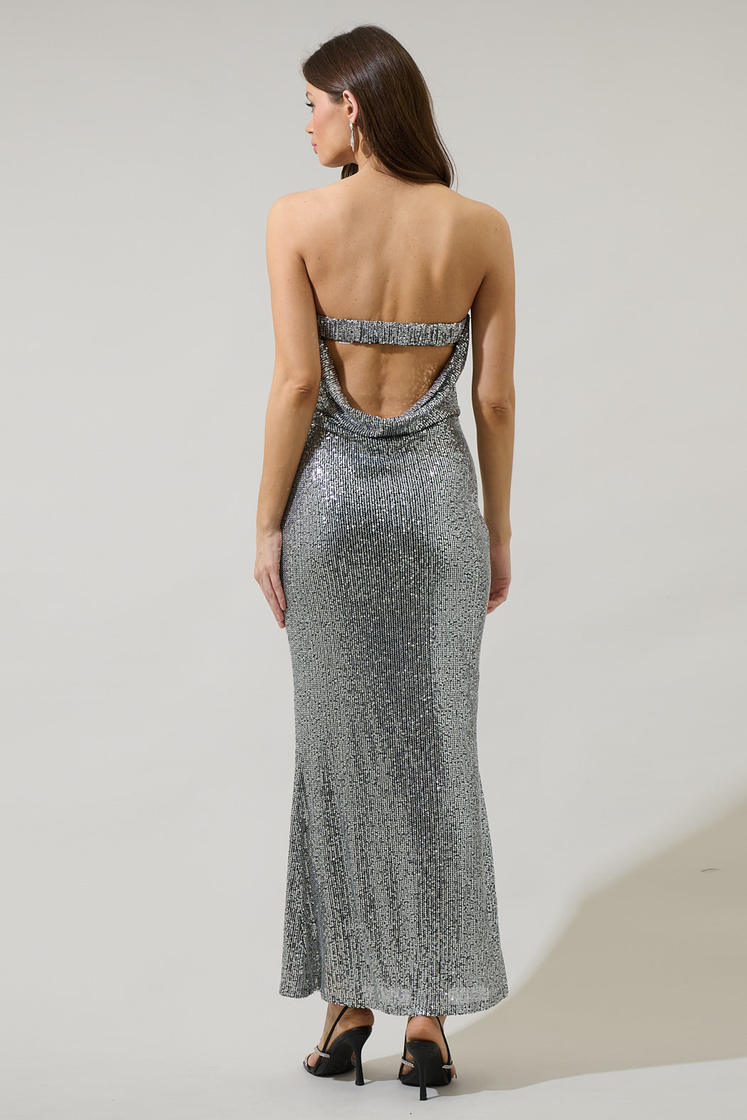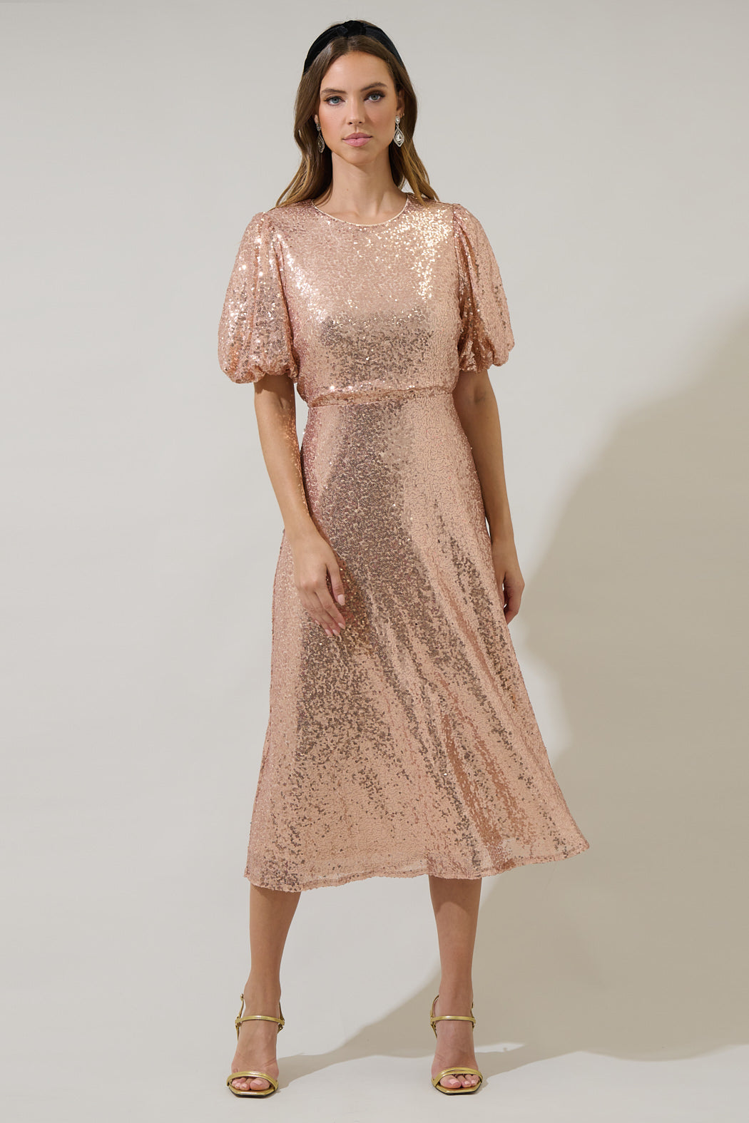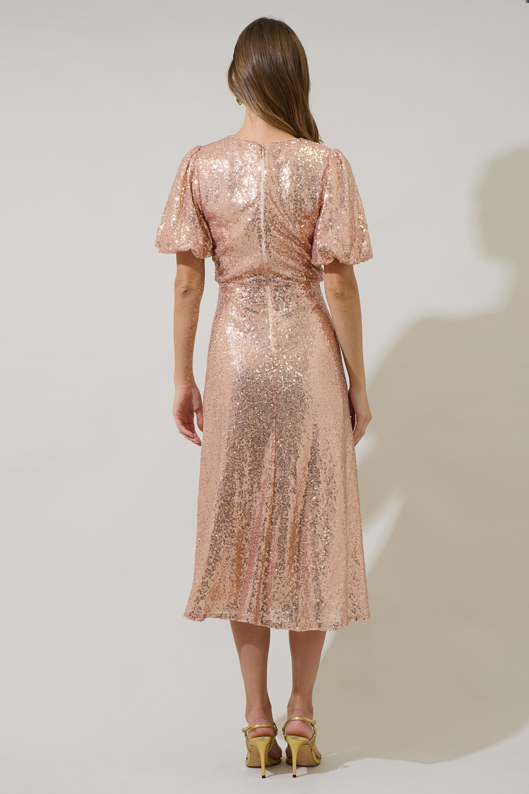 Adelisa Sequin Tie Strap Midi Dress Curve