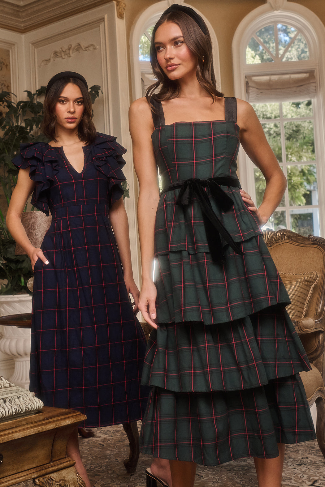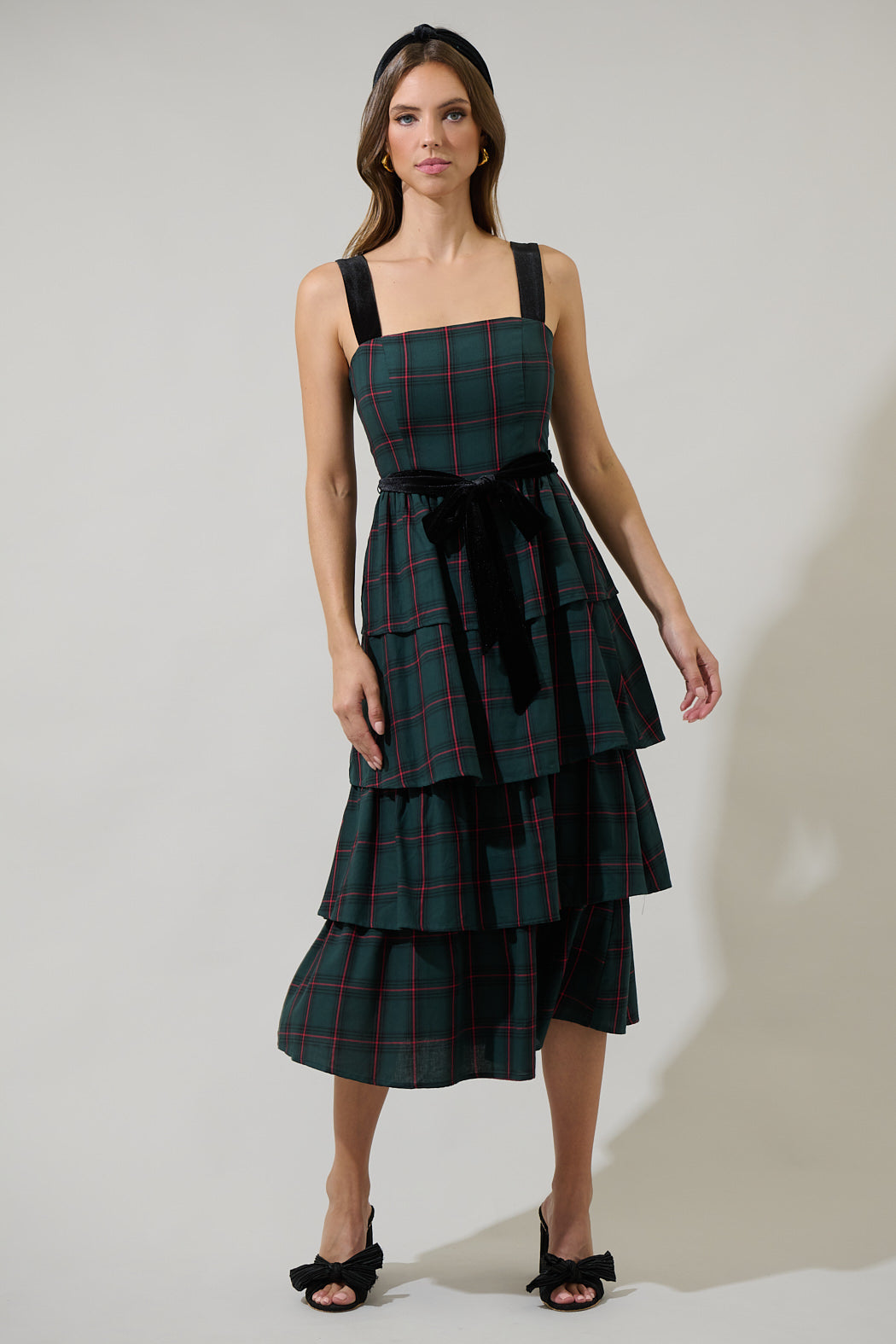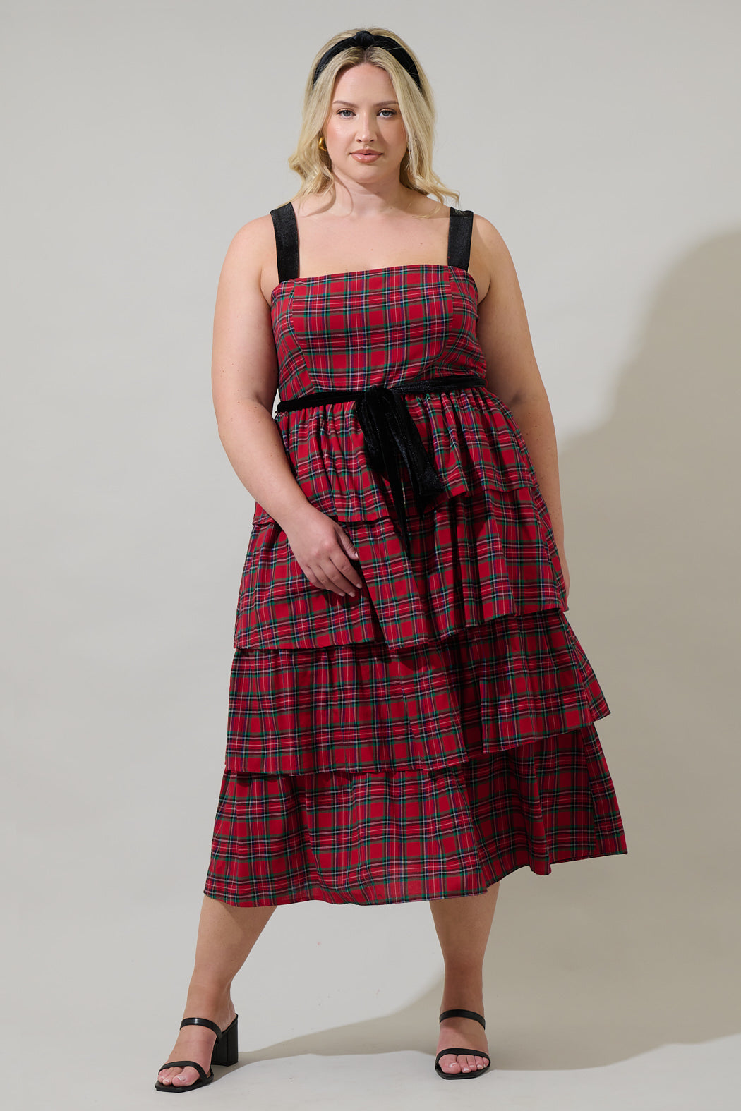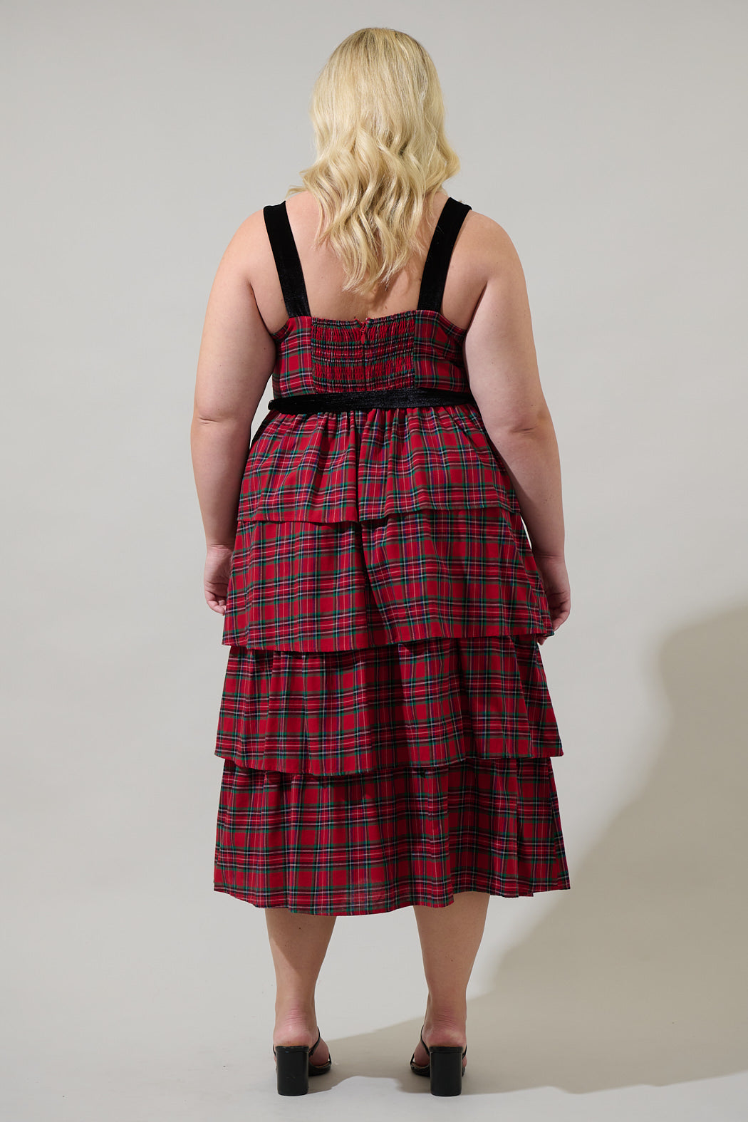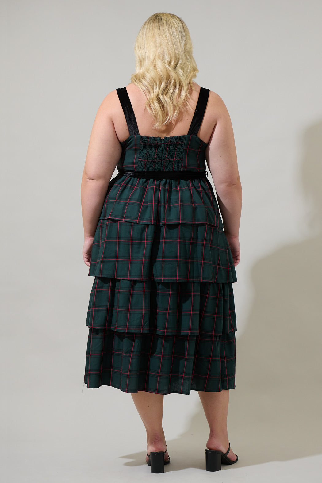 Arvada Plaid Mari Tiered Midi Dress Curve