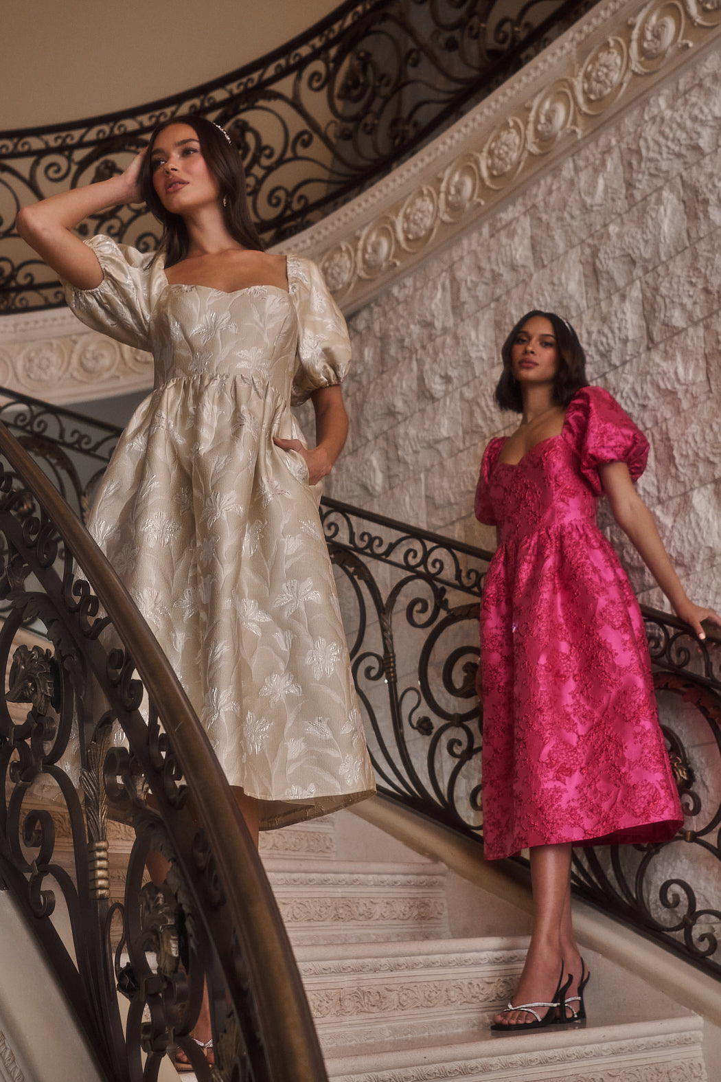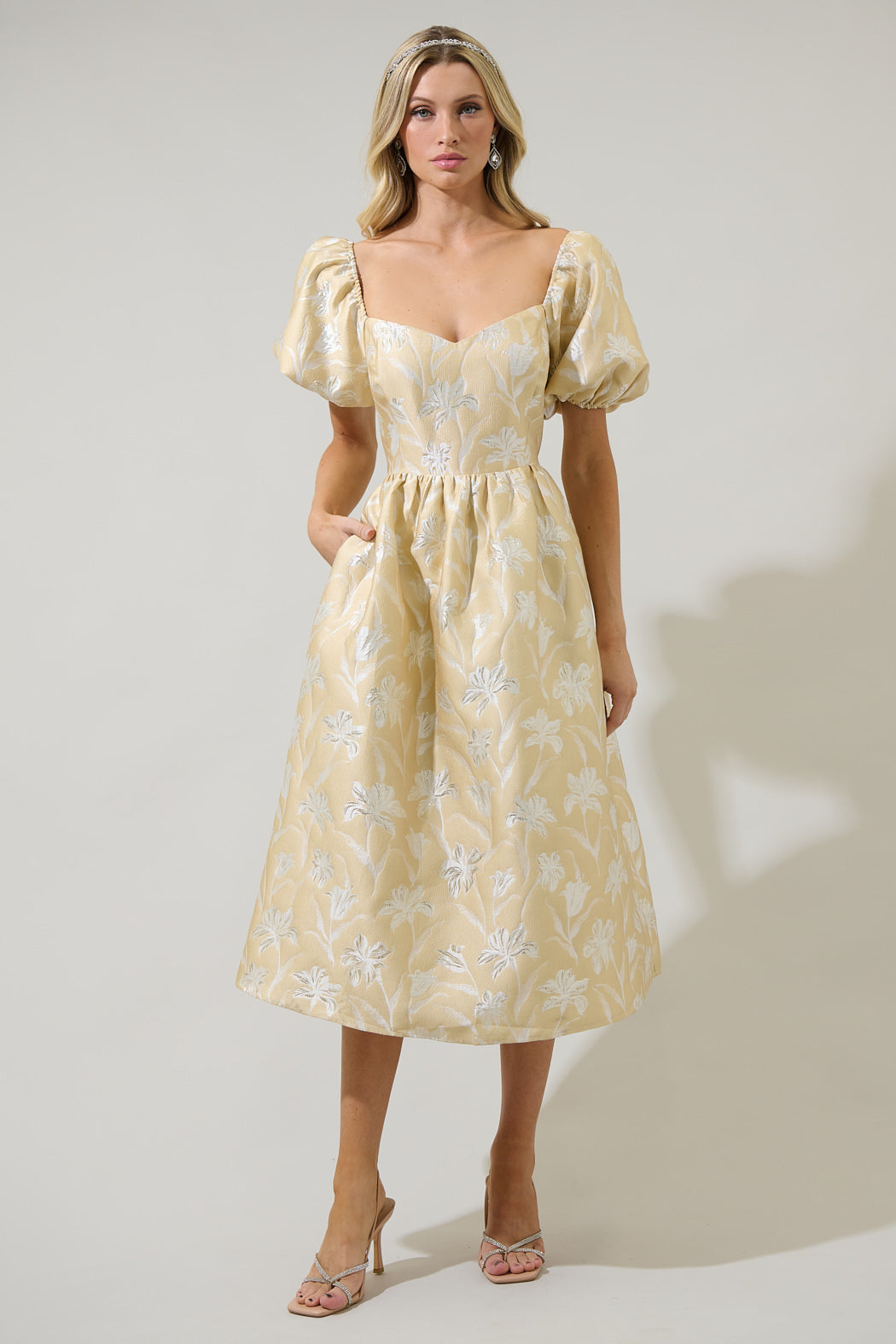 Danica Jacquard Alessi Puff Sleeve Midi Dress