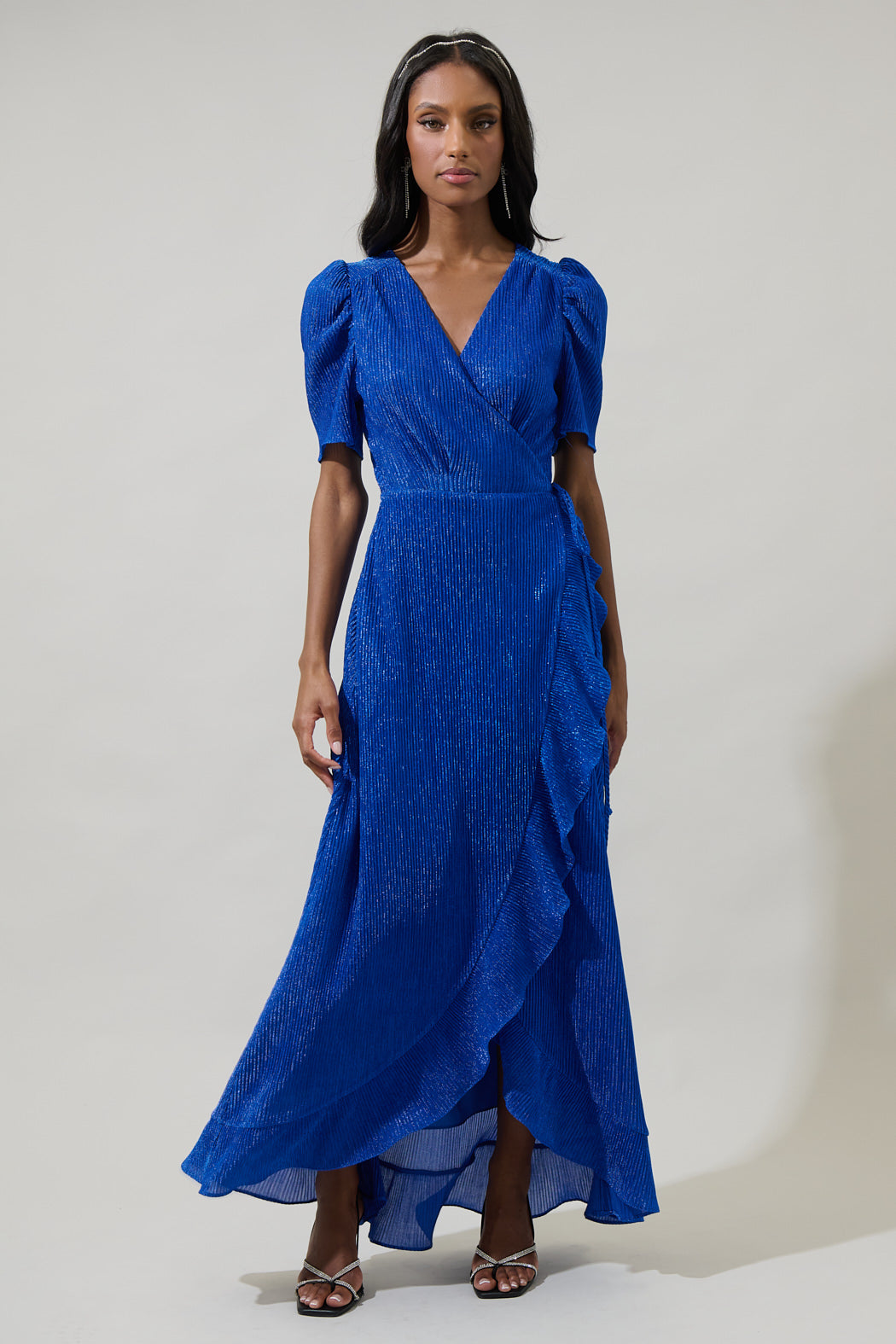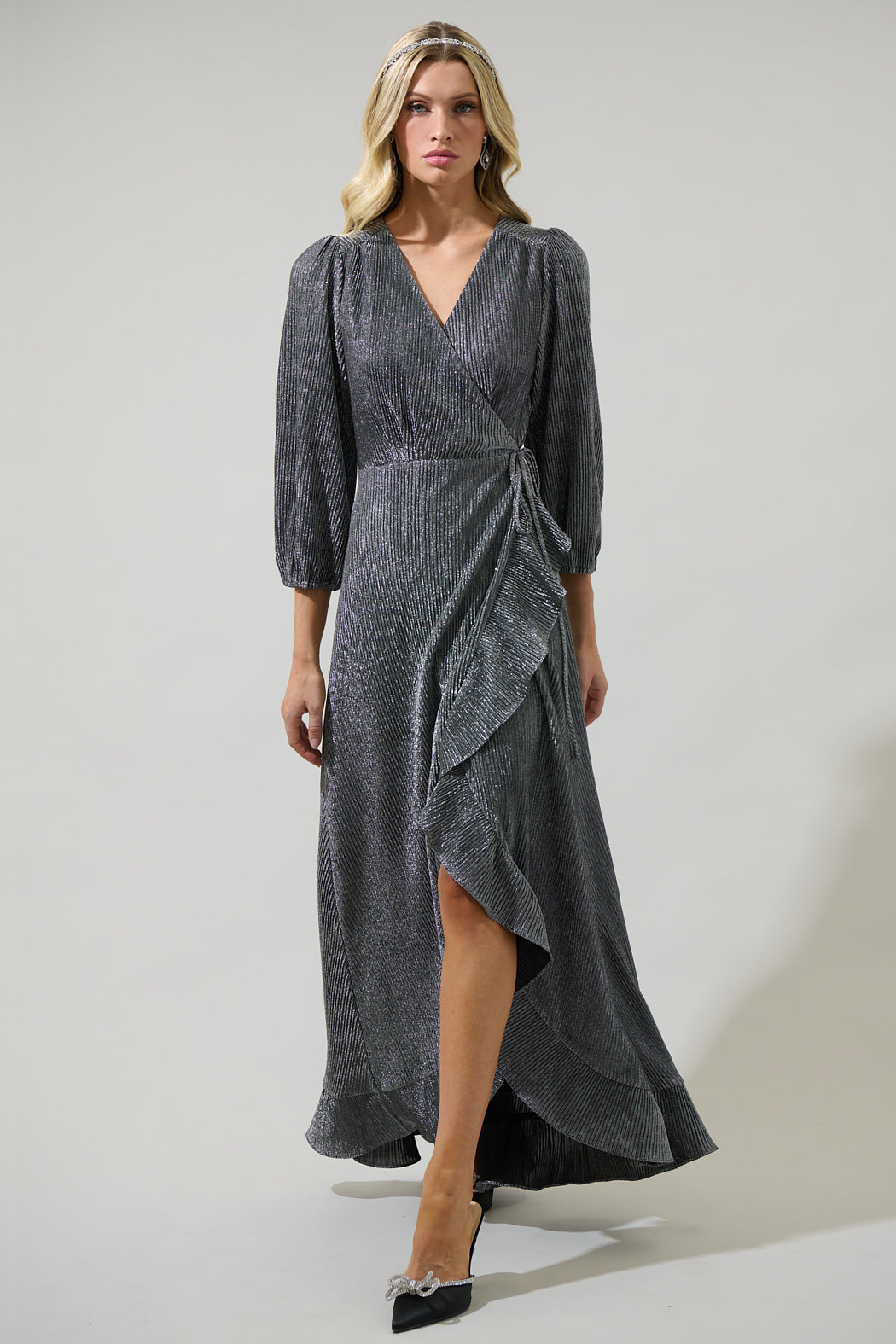 Marly Shimmer Abelia Hi Low Wrap Dress