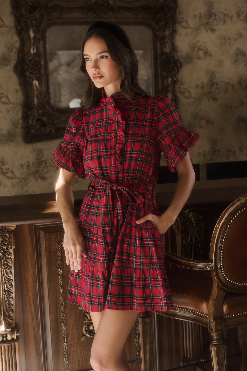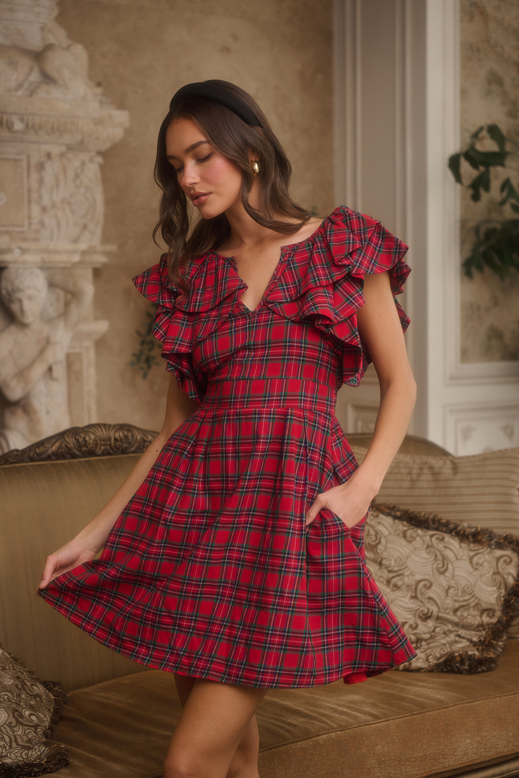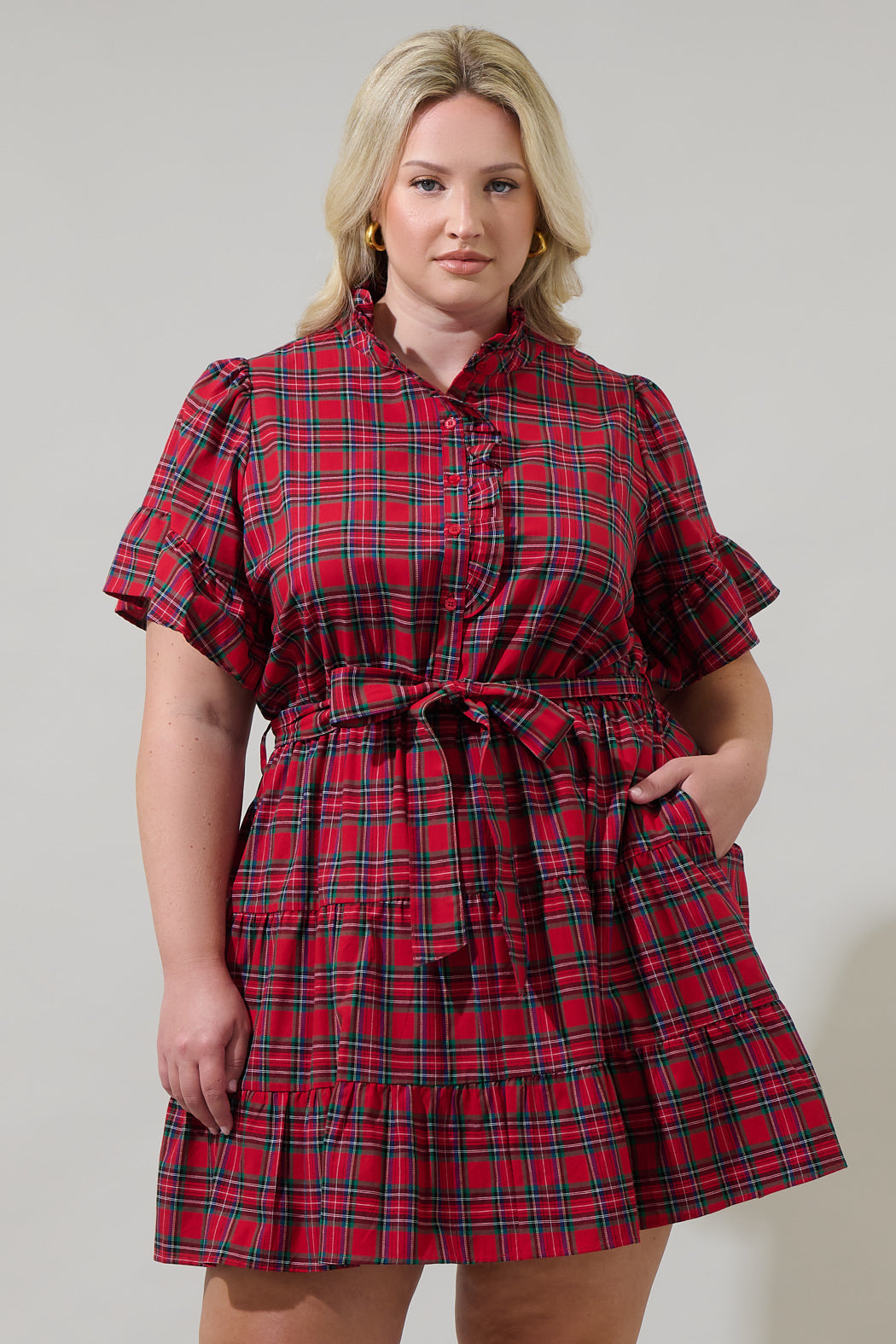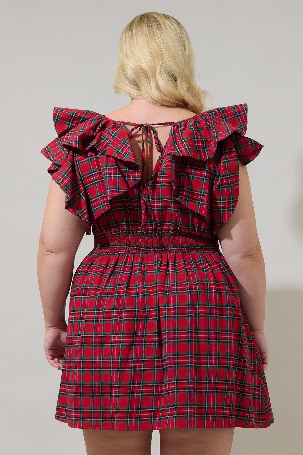 Arvada Plaid Wilma Ruffle Mini Dress Curve