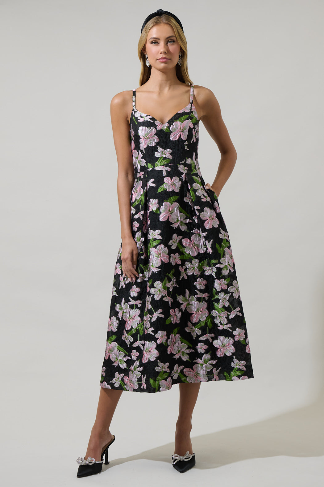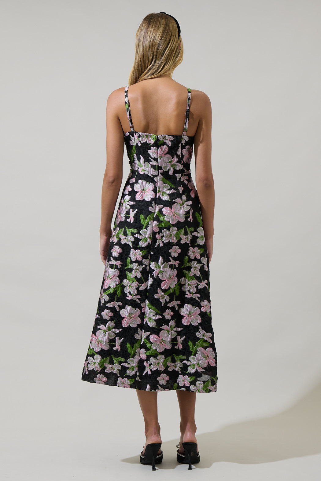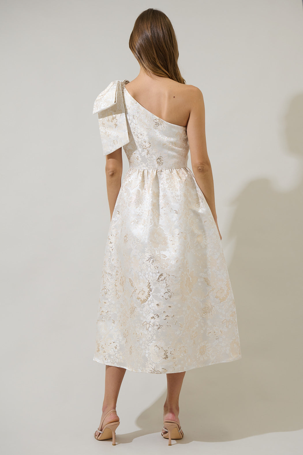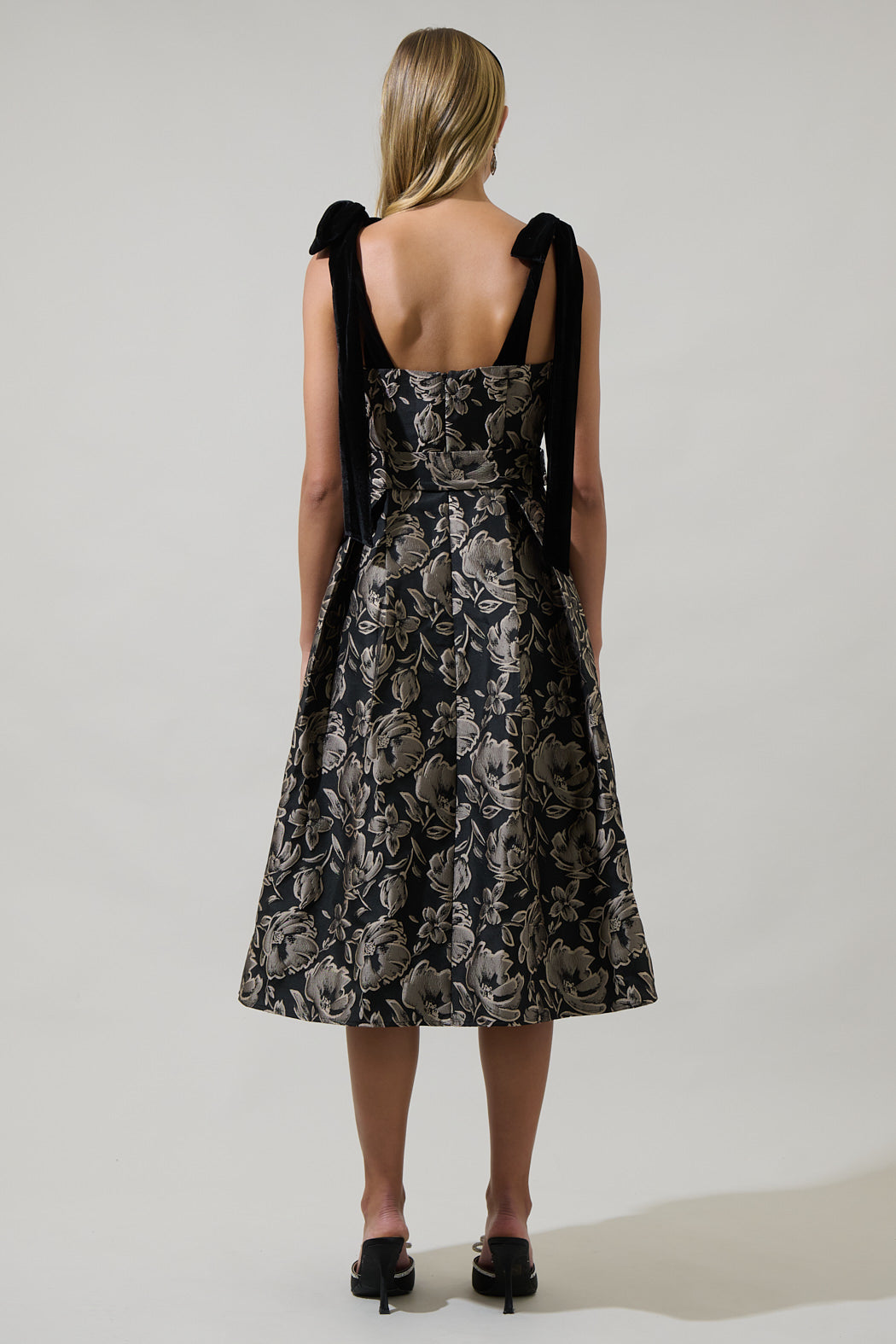 Farrah Jacquard Floral Miley Bow Midi Dress