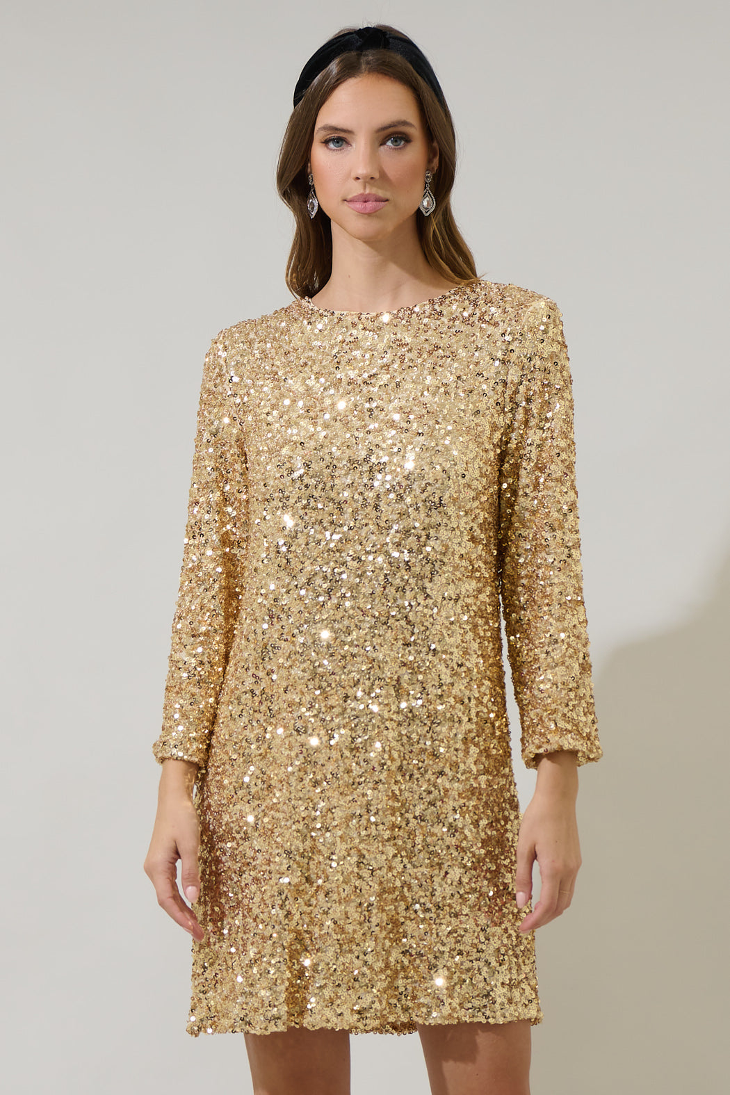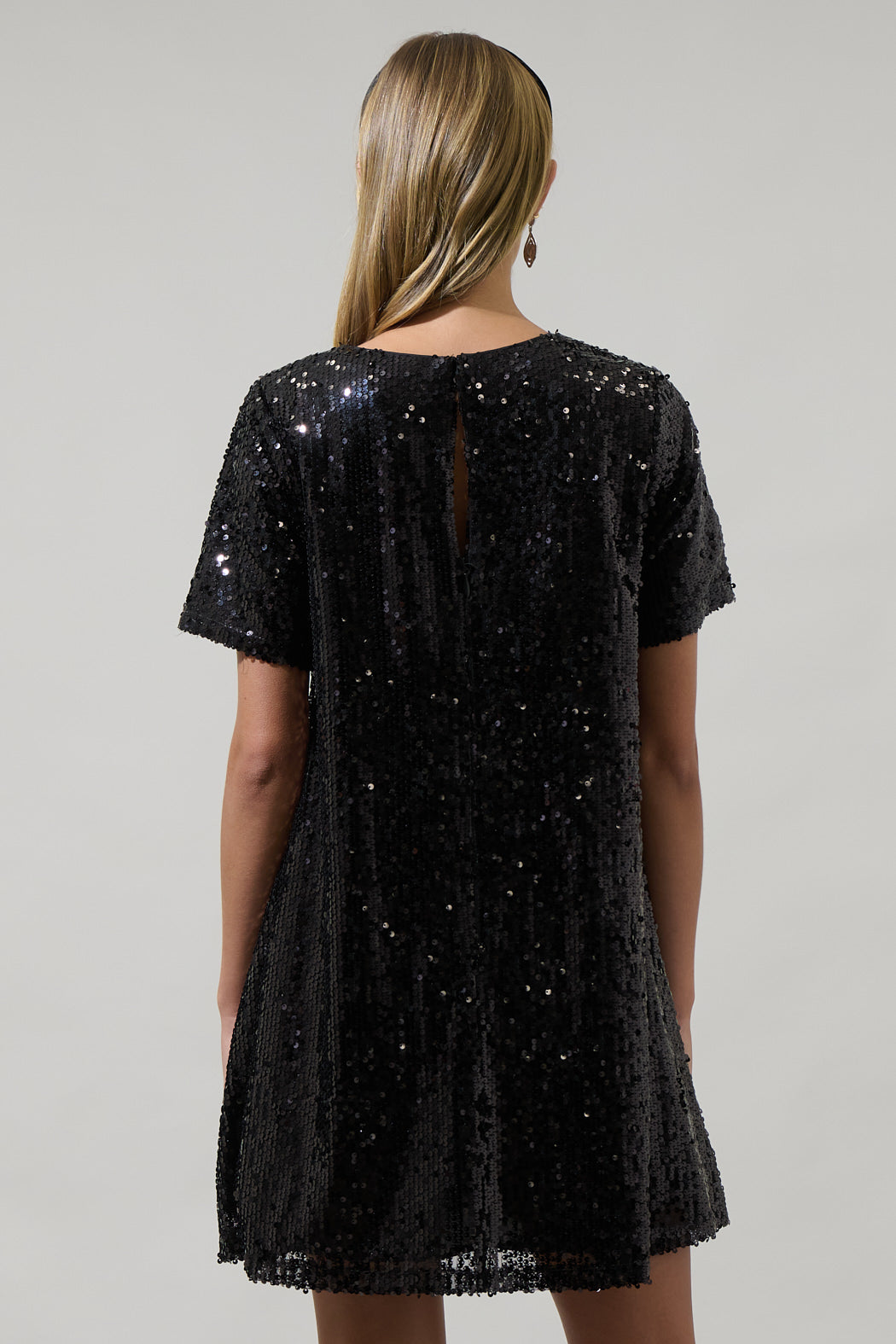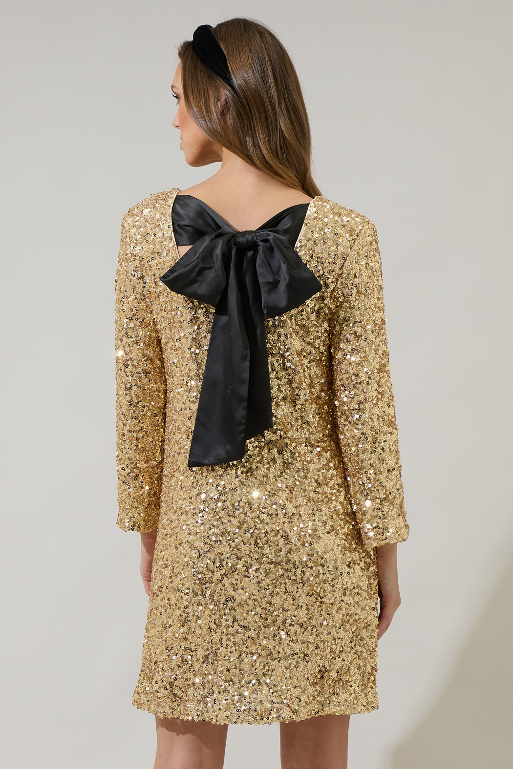 Leslie Sequin Nova Back Bow Tie Mini Dress