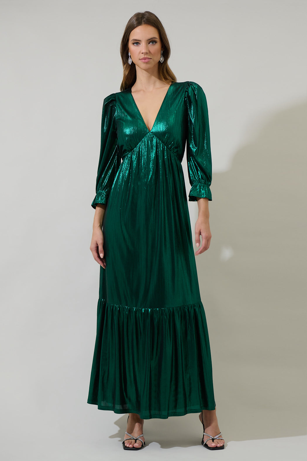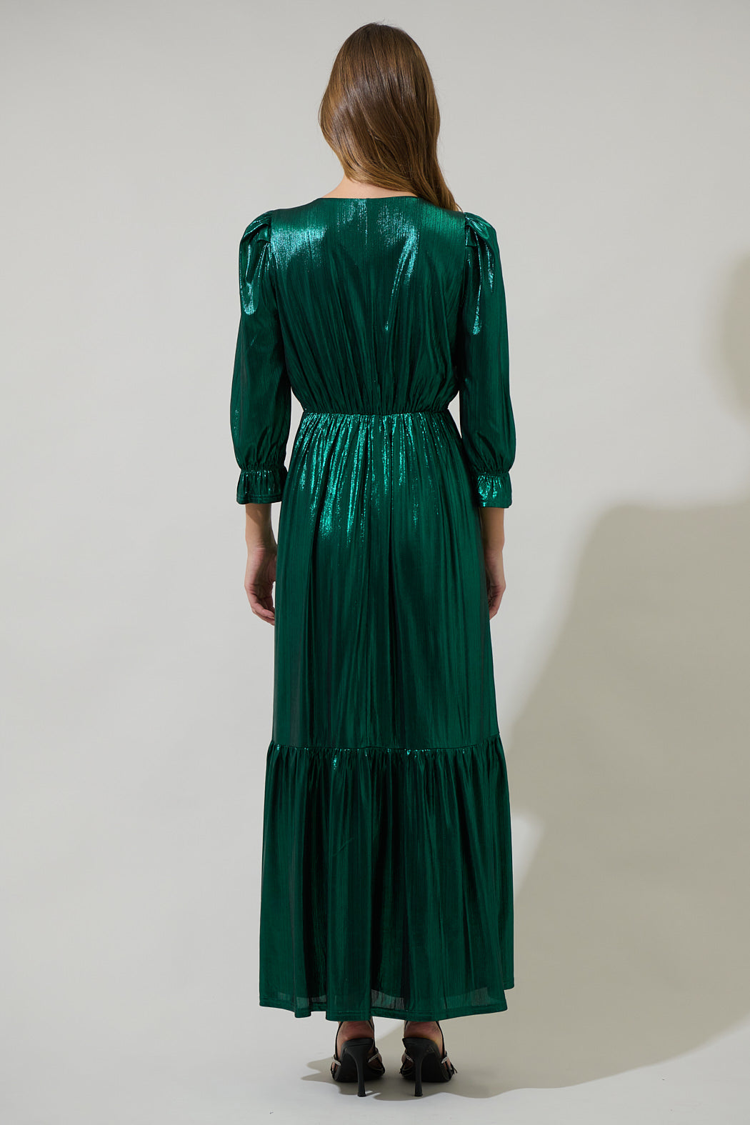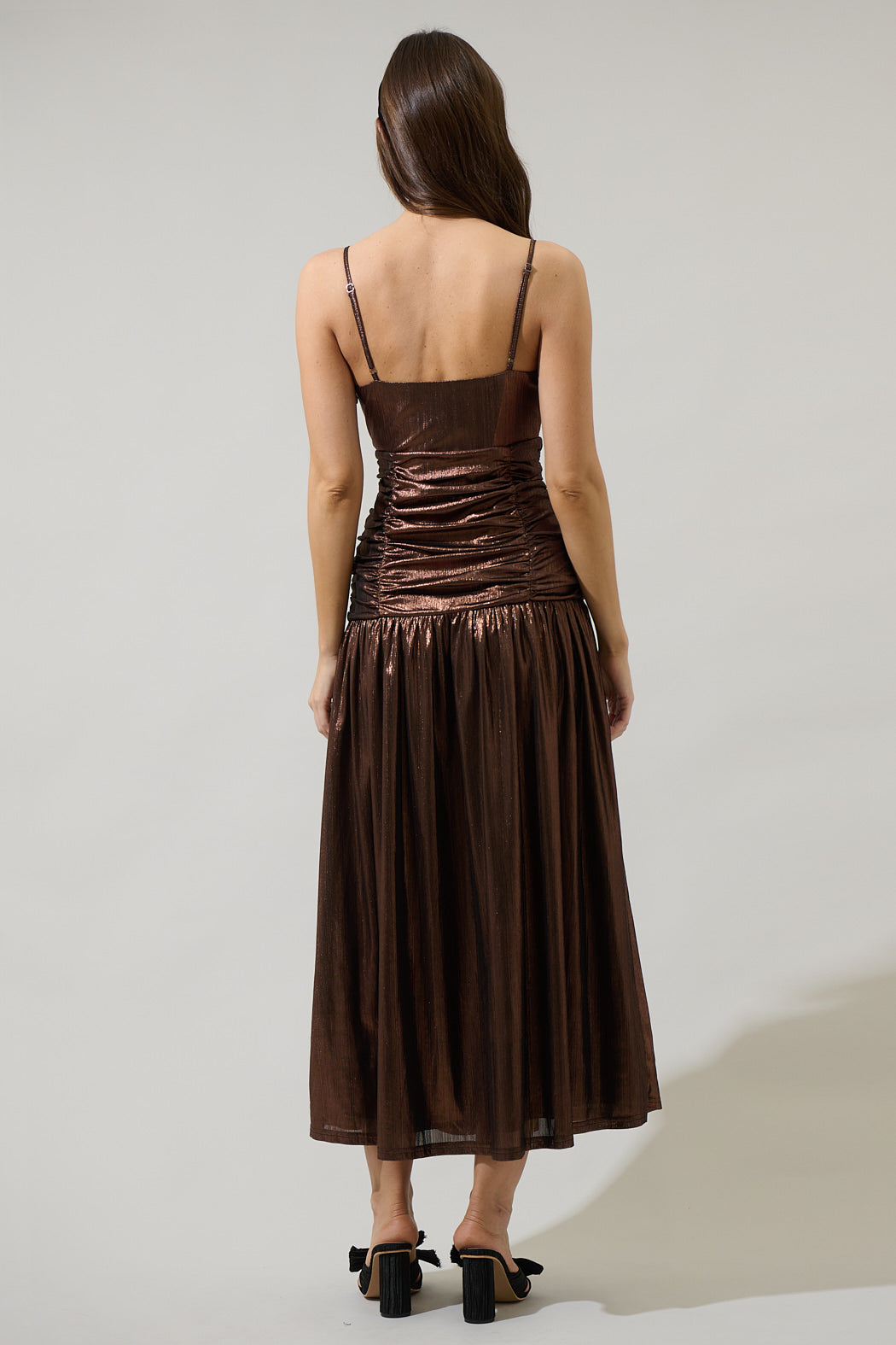 Amberly Metallic Mayrel Pleated Maxi Dress