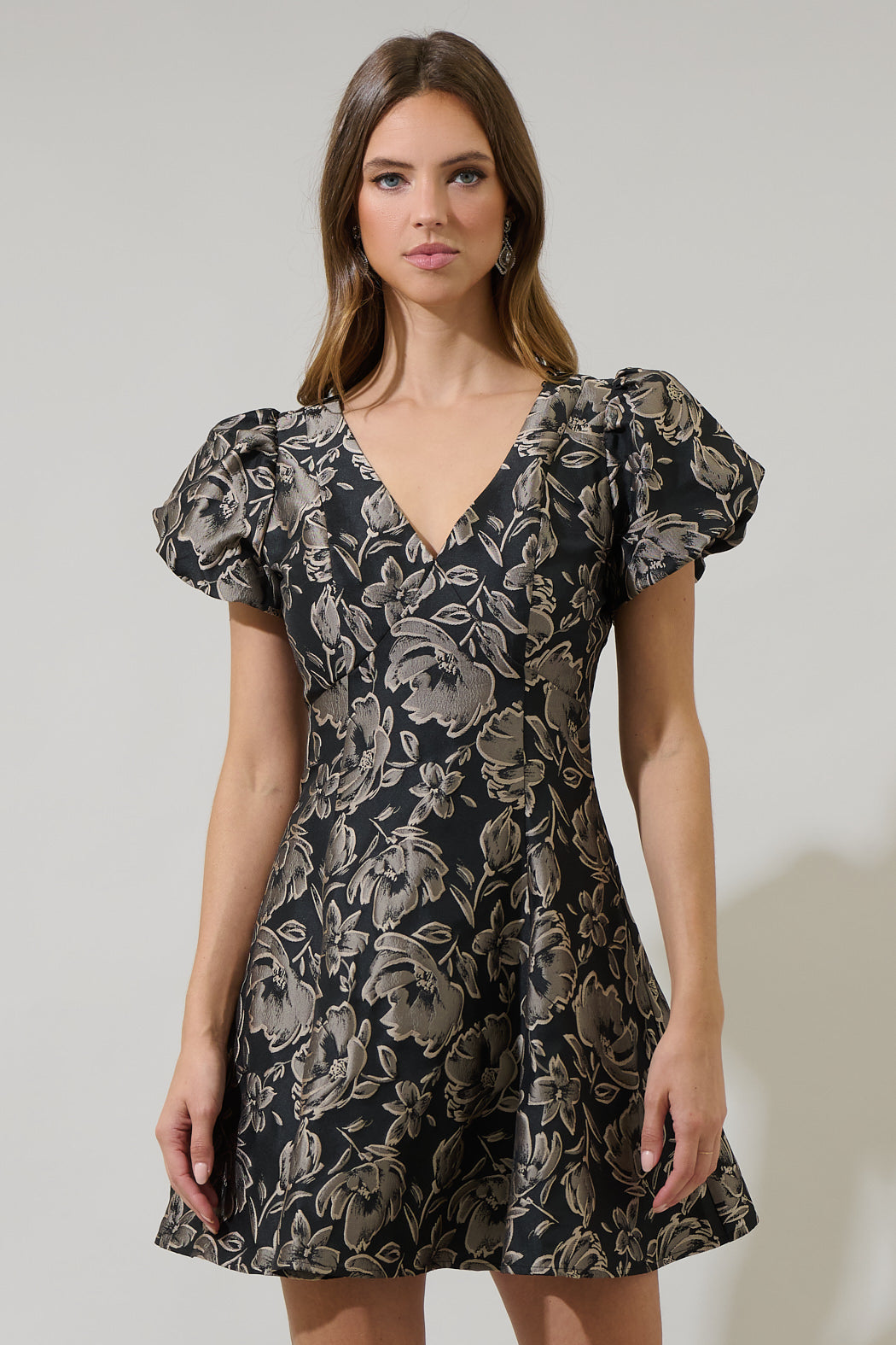 Lyla Jacquard Floral Lara Flare Mini Dress